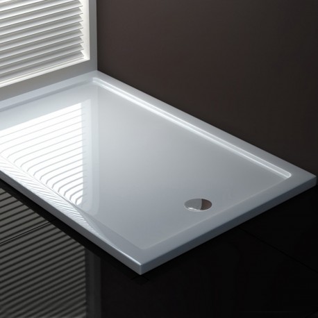 Piatto doccia ultrasottile realizzato in acrilico riducibile in fase di installazione.
