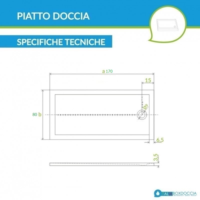 Piatto Doccia 80 x 170 cm in Acrilico