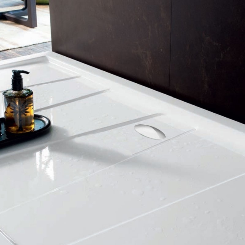 I piatti doccia sono dotati di rifinitura su ogni lato per garantire reversibilità di installazione in base alla propria cabina doccia, nicchia o box. Una leggera inclinazione del piano del piatto, infine, accompagna lo scorrimento dell'acqua verso lo scarico.
