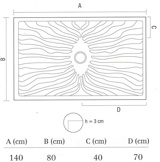 Piatto Doccia Onda 80 x 140 Extrapiatto in Vetroresina Gelcoats di Colore Bianco Altezza 3 cm