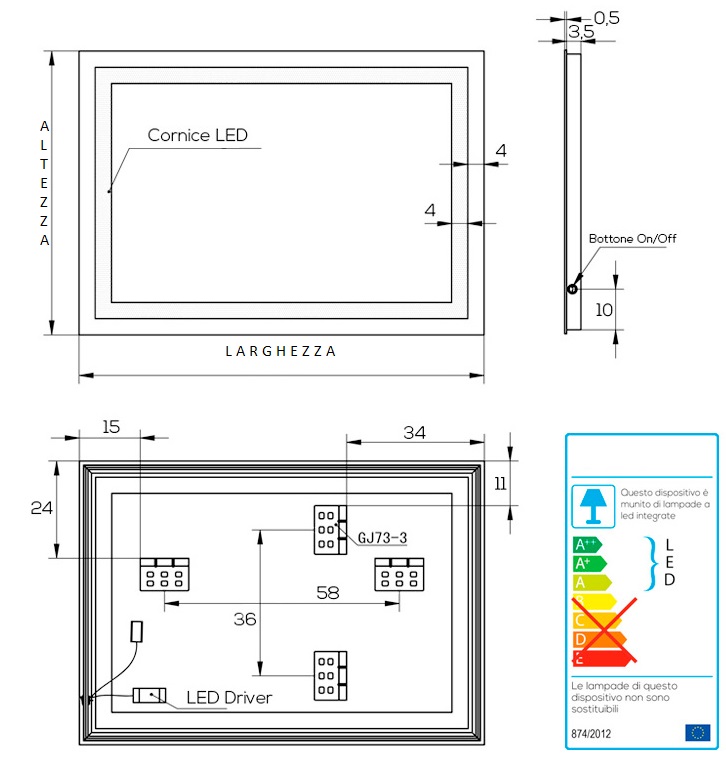Scegliendo questo specchio retroilluminato led, si completerà al meglio una composizione bagno moderna. La forma regolare rettangolare con angoli stondati crea una superficie riflettente ampia e confortevole, dimensionata per arredare con stile ogni ambiente bagno.