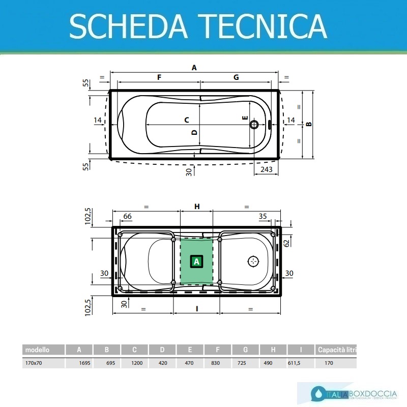 Per il tuo bagno cerchi una vasca che sappia fare la differenza coniugando al meglio bellezza, praticità di utilizzo e convenienza? Se la risposta è sì, abbiamo il modello che fa per te. Ti proponiamo l'acquisto della vasca 70X170 cm PANNELLATA modello CALYPSO, dalle linee morbide. Il prodotto in argomento, dalle elevate prestazioni, è in vetroresina di colore bianco ed ha le seguenti dimensioni: 170x70 H.55 cm.