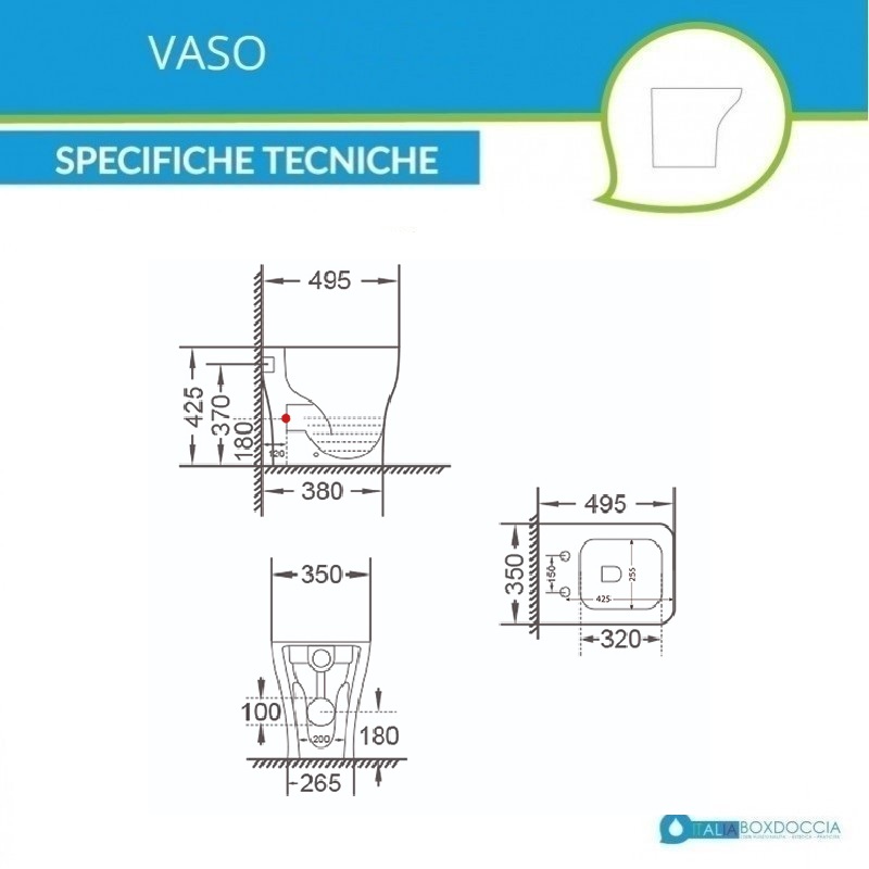Il vaso filo muro riduce l'ingombro dei sanitari e facilita le operazioni di pulizia del bagno. Lo scarico a parete del wc può essere trasformato in scarico a pavimento utilizzando una curva tecnica acquistabile separatamente.