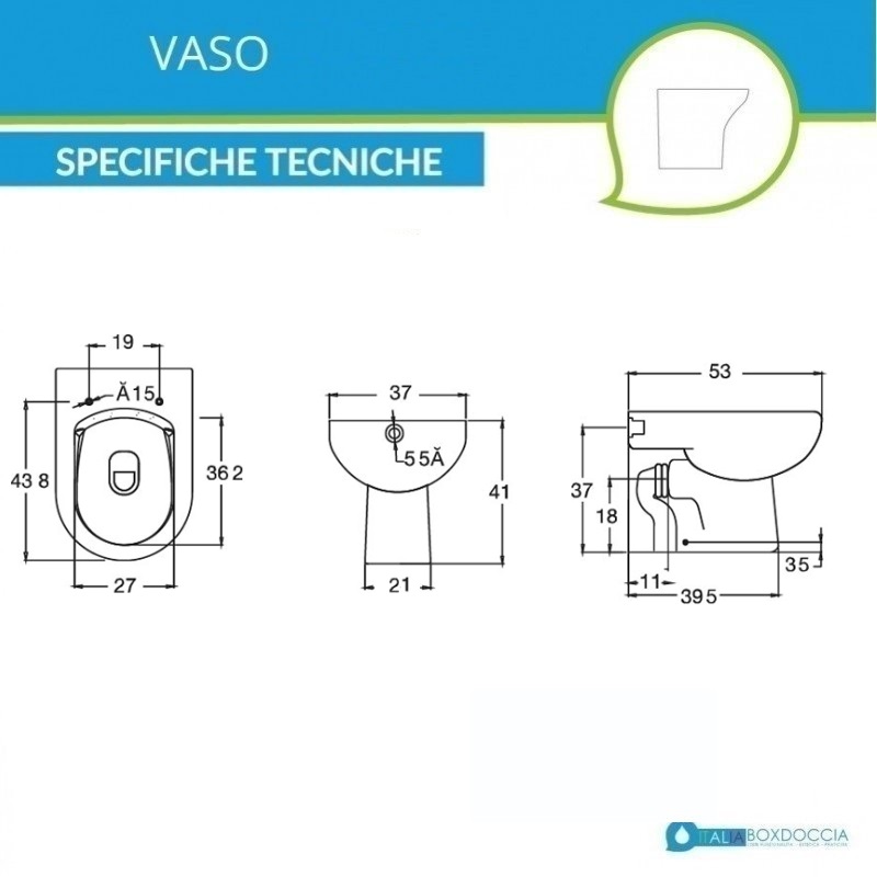 Il vaso filo muro riduce l'ingombro dei sanitari e facilita le operazioni di pulizia del bagno. Lo scarico a parete del wc può essere trasformato in scarico a pavimento utilizzando una curva tecnica acquistabile separatamente.