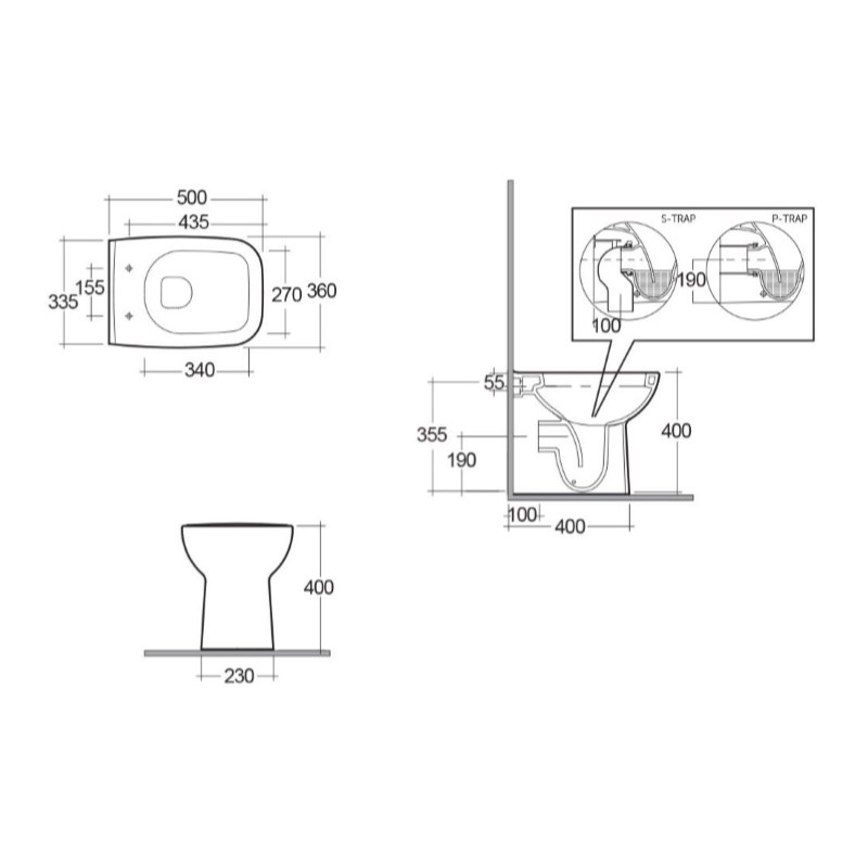 1 vaso a terra filomuro origin con scarico a parete trasformabile a pavimento tramite curva tecnica (cod. ORG17AWHA);