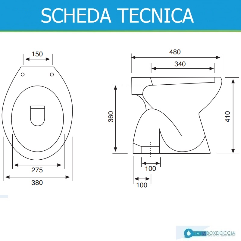 L'uscita dell'acqua per la funzione bidet si trova nella parte anteriore del water ed è a due getti, mentre lo scarico dell'acqua è a cacciata.