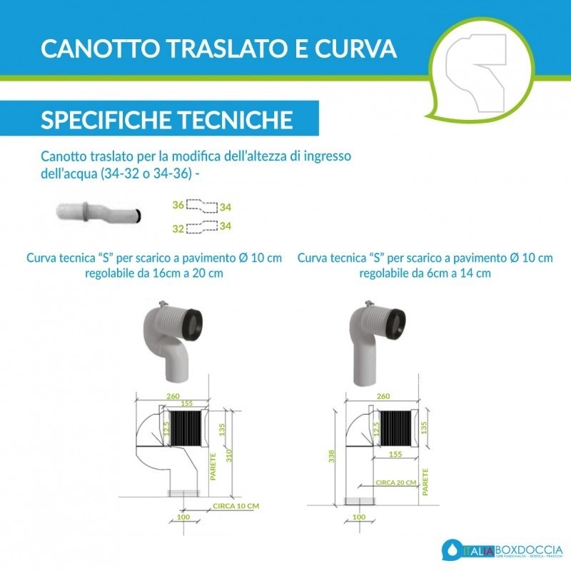 Il modello BUILD grazie allo scarico traslato può essere installato anche su impianti esistenti senza dover apportare modifiche invasive all'impianto. Il sistema scarico traslato permette di installare i sanitari in impianti dove la distanza dal centro foro dello scarico al muro è compresa tra 6 a 20 cm, il tutto attraverso apposite curve tecniche. A completare il sistema scarico traslato è previsto un raccordo eccentrico che offre una flessibilità di 2 cm.