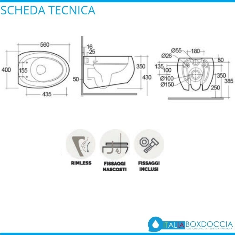 - Vaso con tecnologia water saving, scarica con 3 / 2,7 litri di acqua.