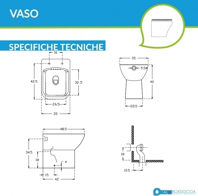 Il vaso filo muro riduce l'ingombro dei sanitari e facilita le operazioni di pulizia del bagno. Lo scarico a parete del wc può essere trasformato in scarico a pavimento utilizzando una curva tecnica acquistabile separatamente.